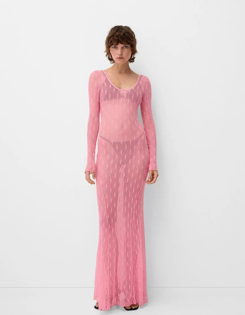 Abito lungo in pizzo con schiena scoperta