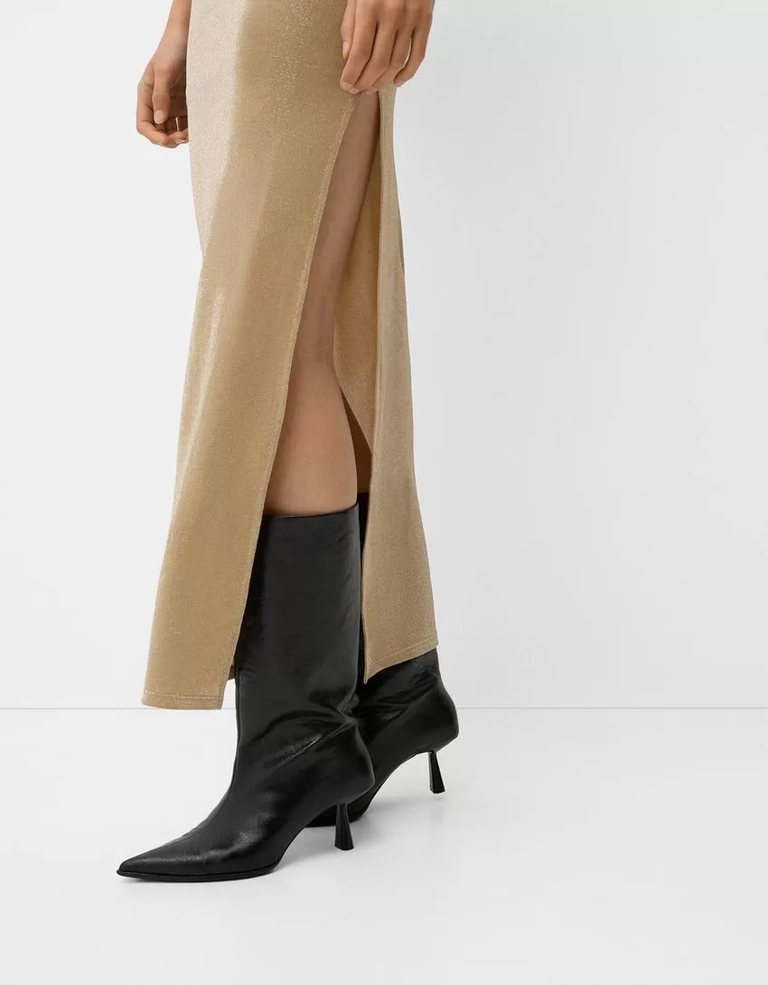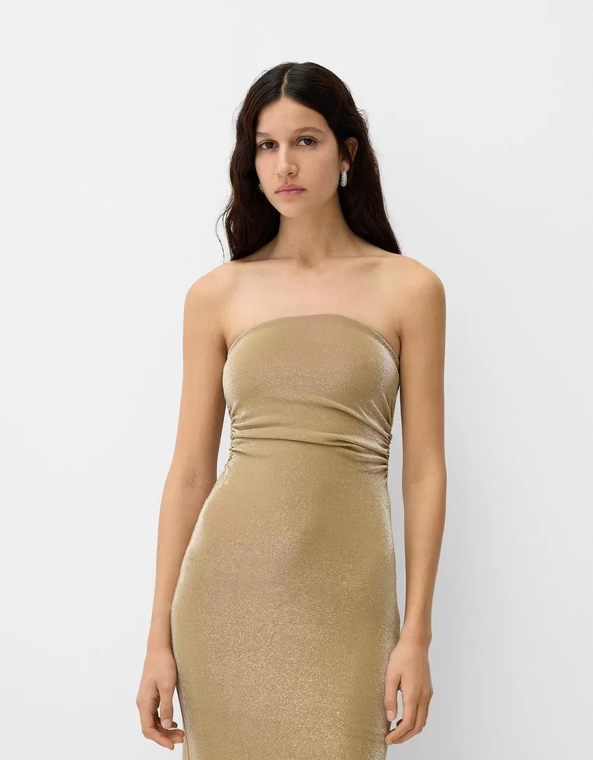 Abito midi con scollo a fascia e filo metallico