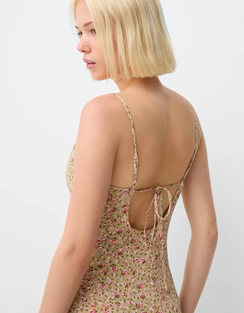 Abito midi in crêpe stampato con volant