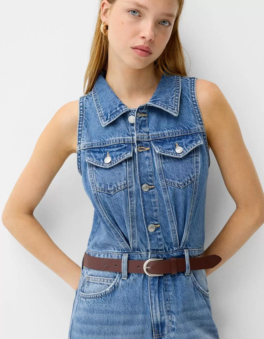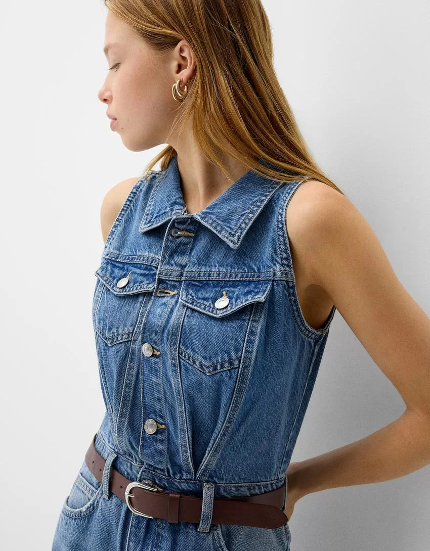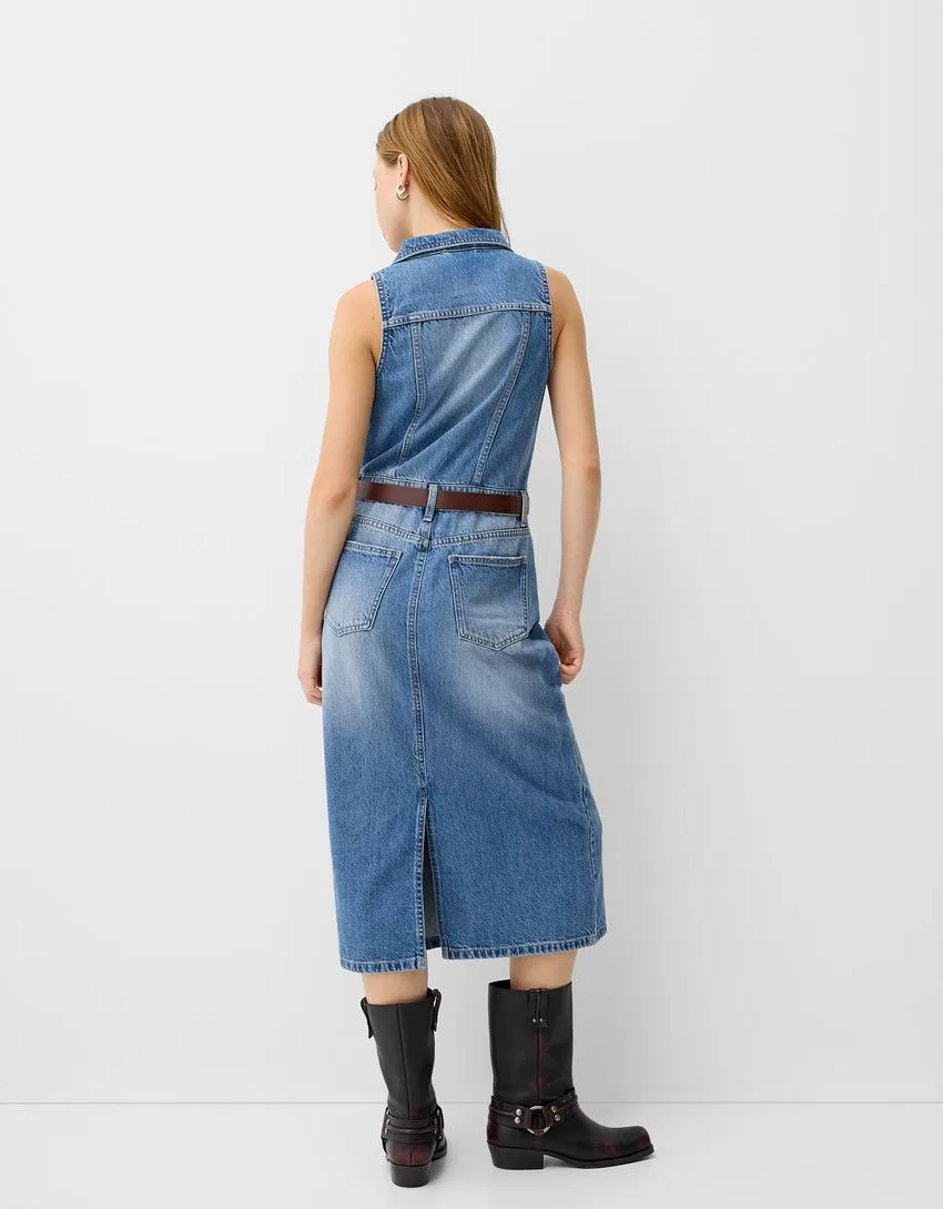 Abito midi in denim con cintura