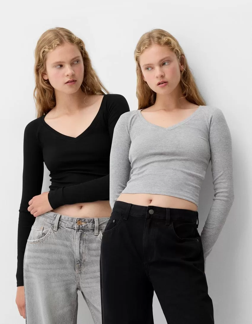 Confezione da 2 magliette a maniche lunghe con scollo a V