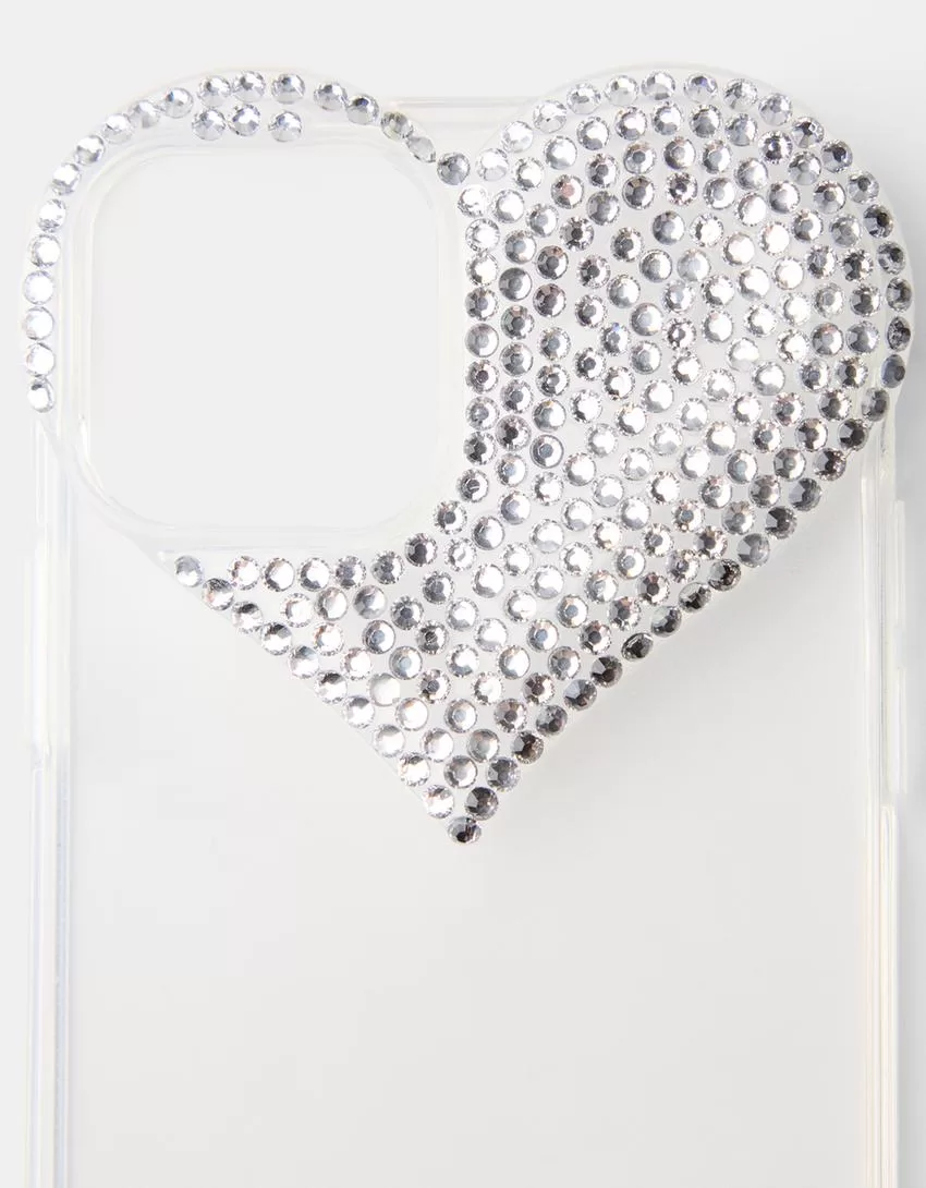 Custodia per iPhone con cuore in strass