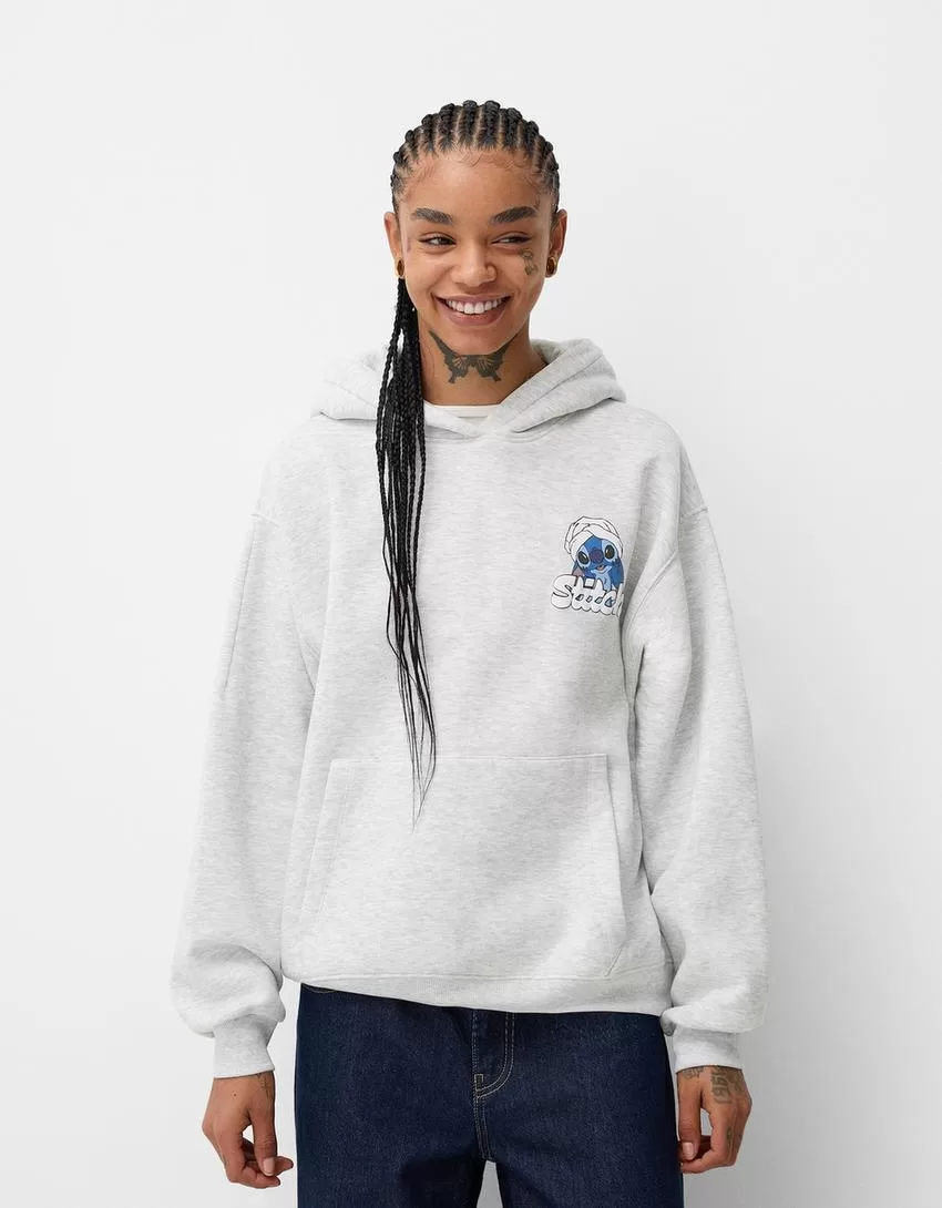 Felpa con cappuccio con stampa Lilo & Stitch