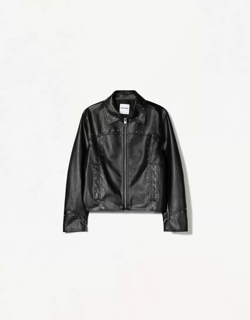 Giacca effetto pelle borchiata