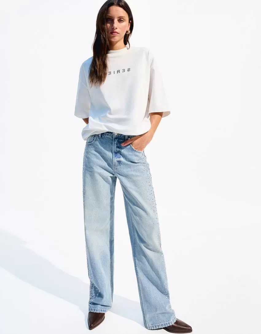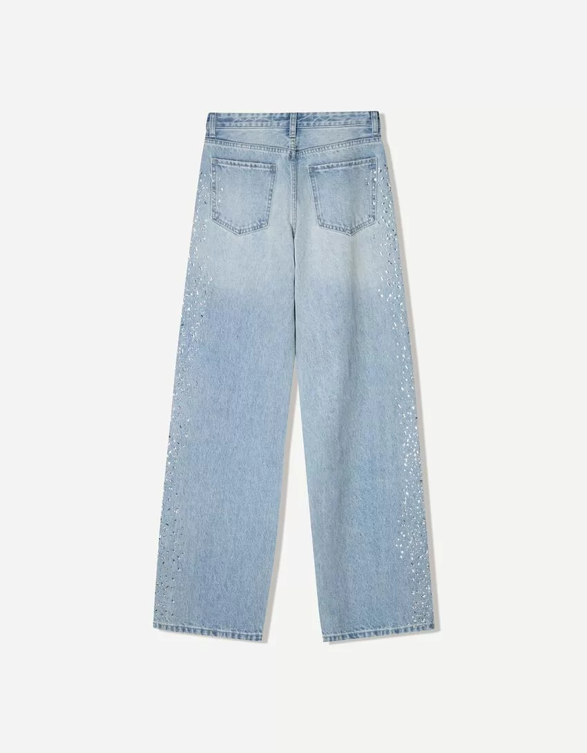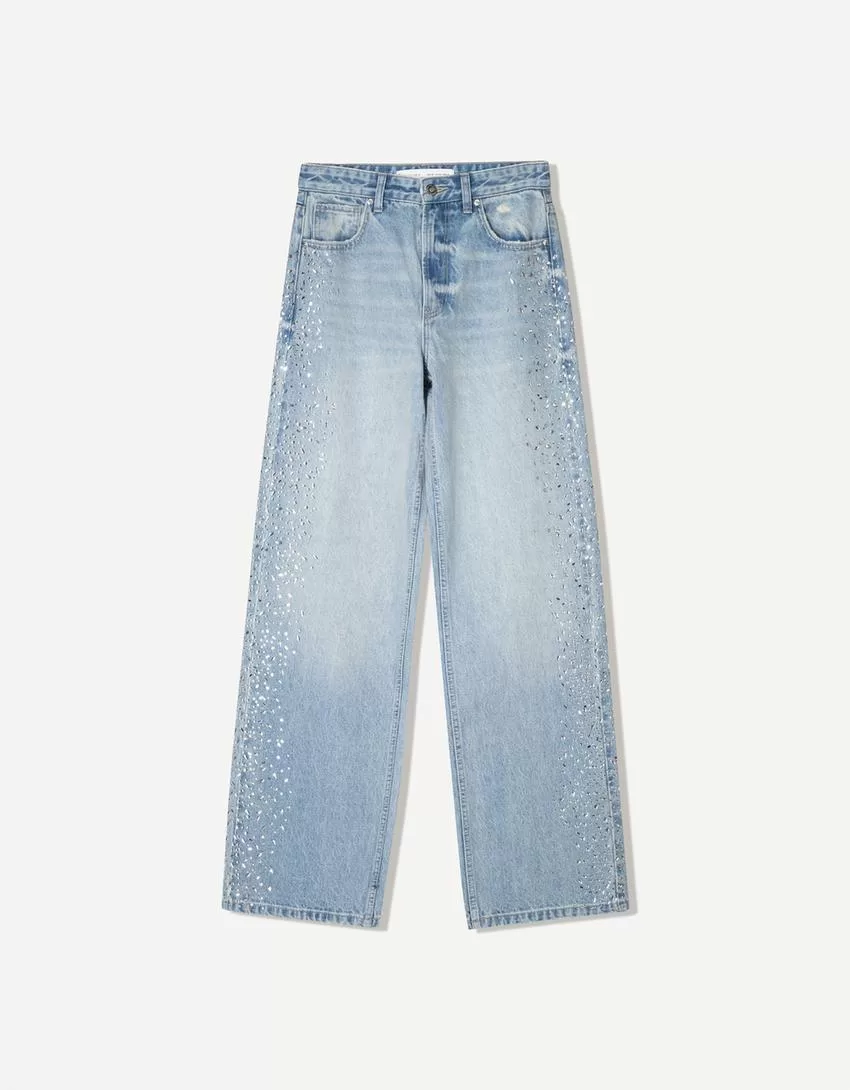 Jeans a gamba larga anni ’90 con strass