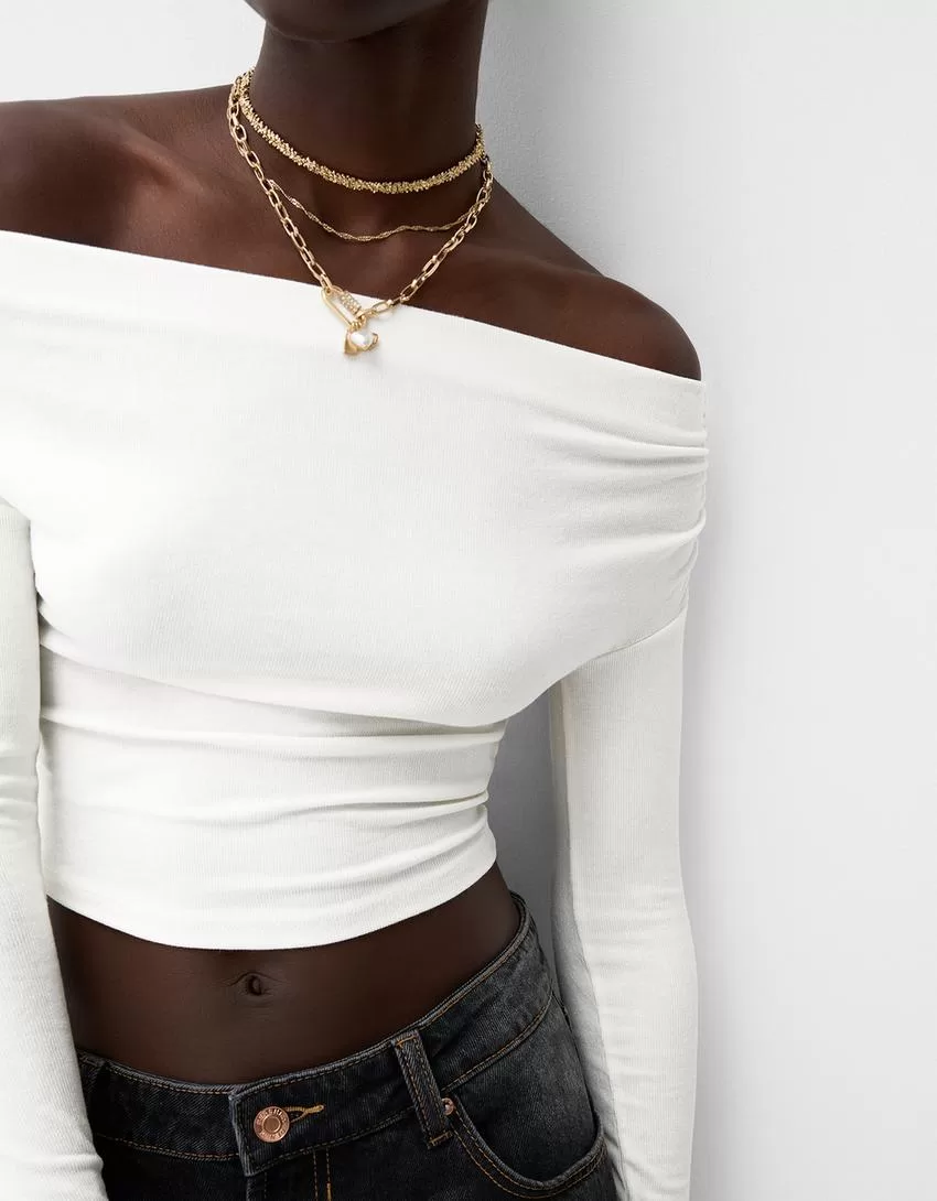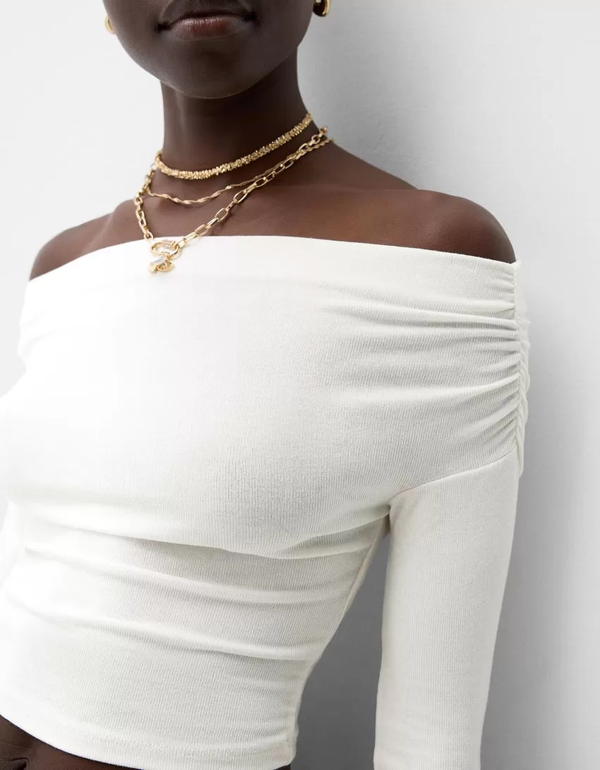 Maglia Bardot arricciata