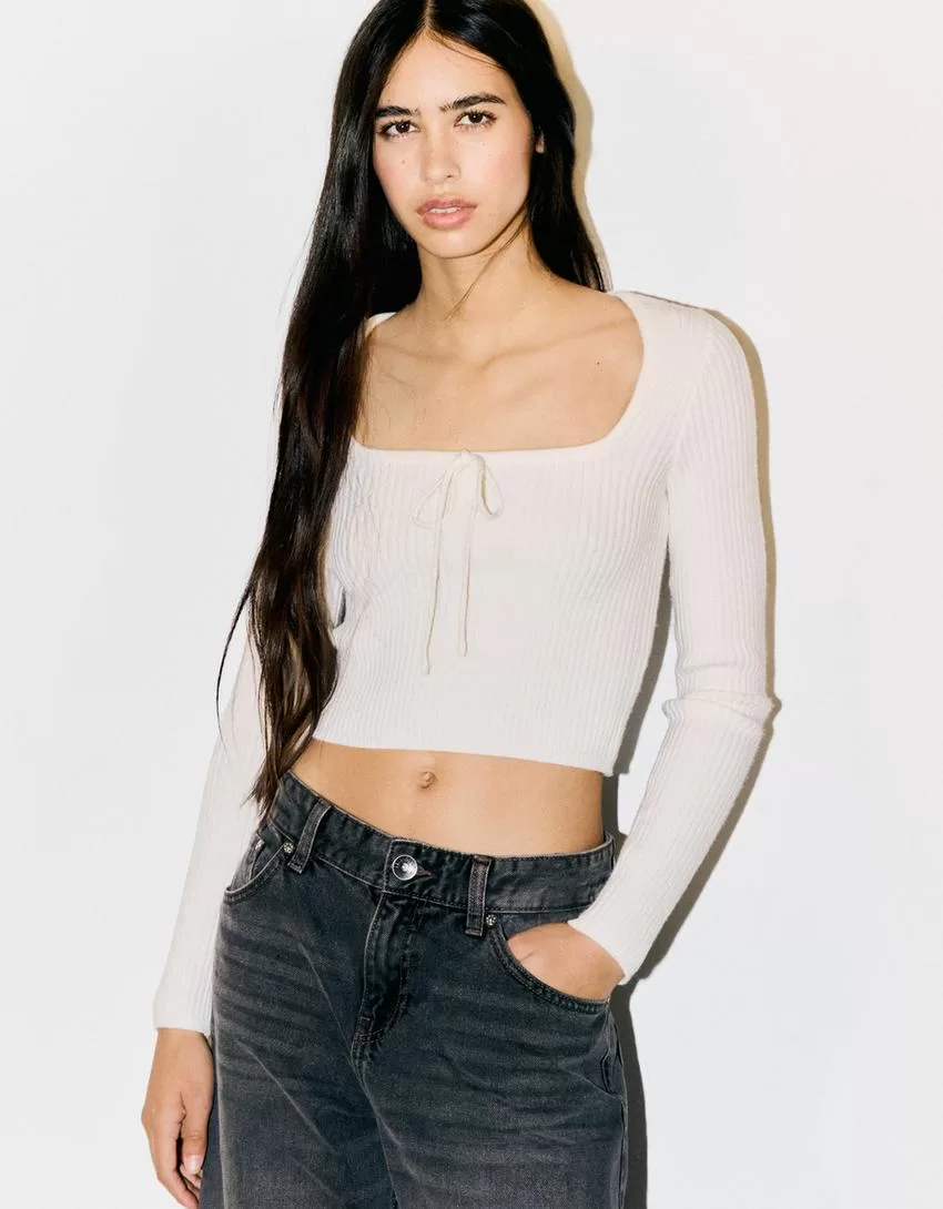 Maglia con scollo quadrato e fiocco