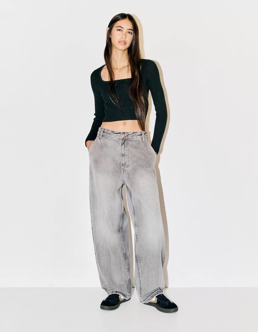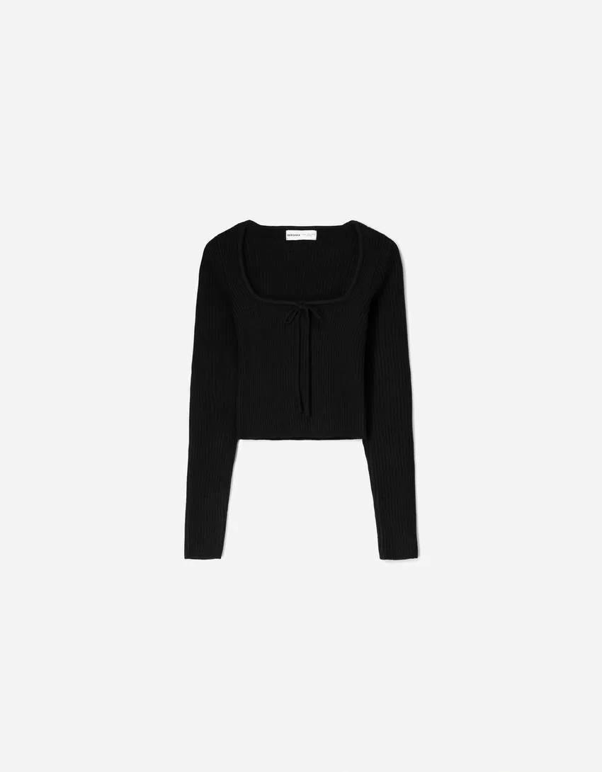 Maglia con scollo quadrato e fiocco