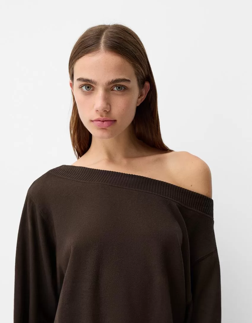 Maglione con collo asimmetrico morbido al tatto
