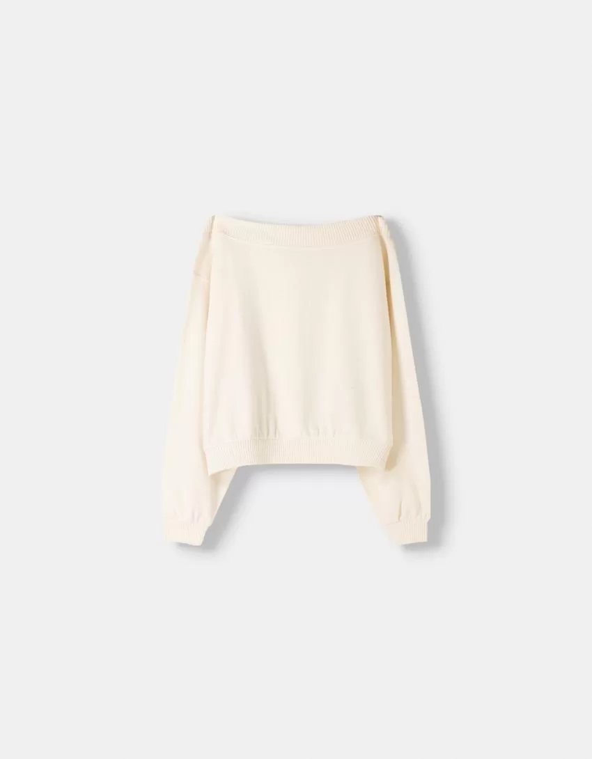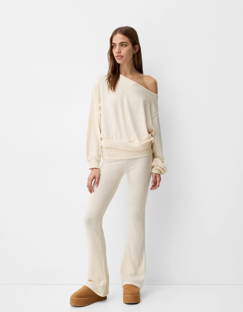 Maglione con collo asimmetrico morbido al tatto