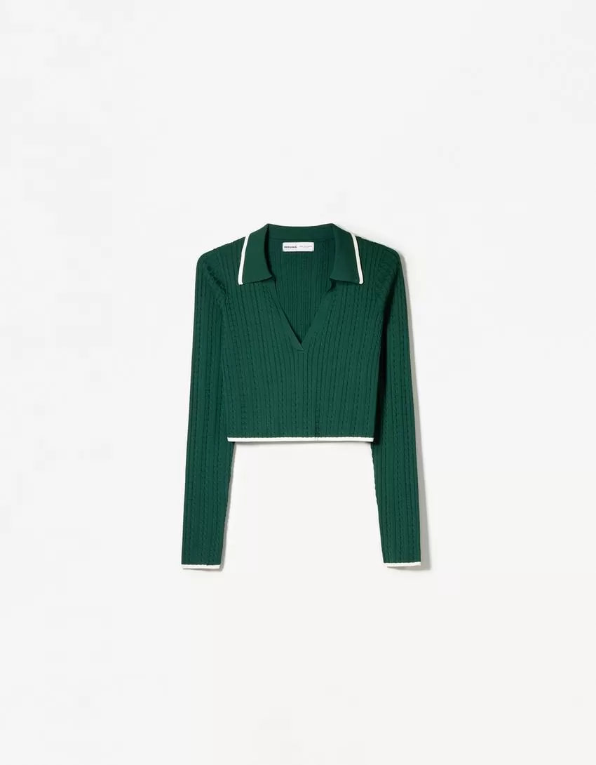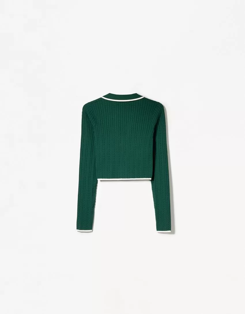 Maglione con collo polo lavorato a trecce