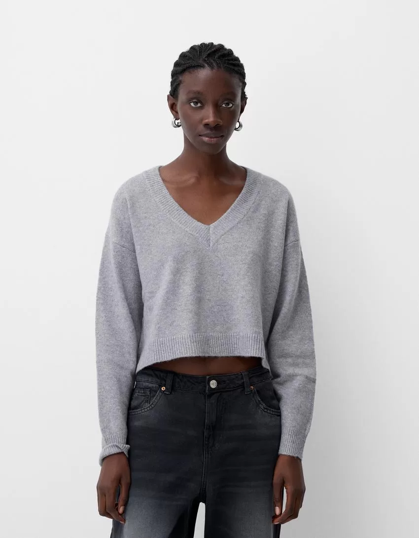 Maglione corto con scollo a V
