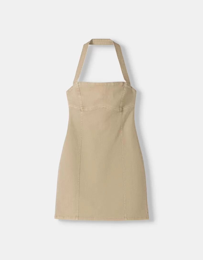 Miniabito in twill allacciato al collo