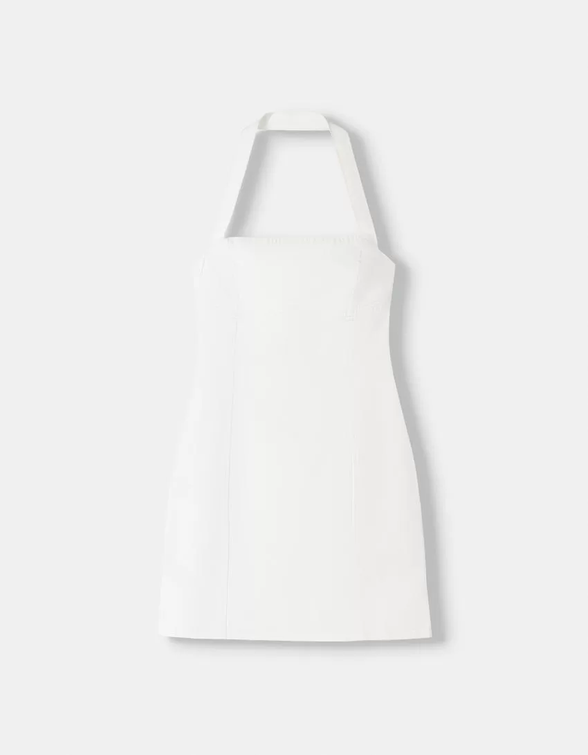 Miniabito in twill allacciato al collo