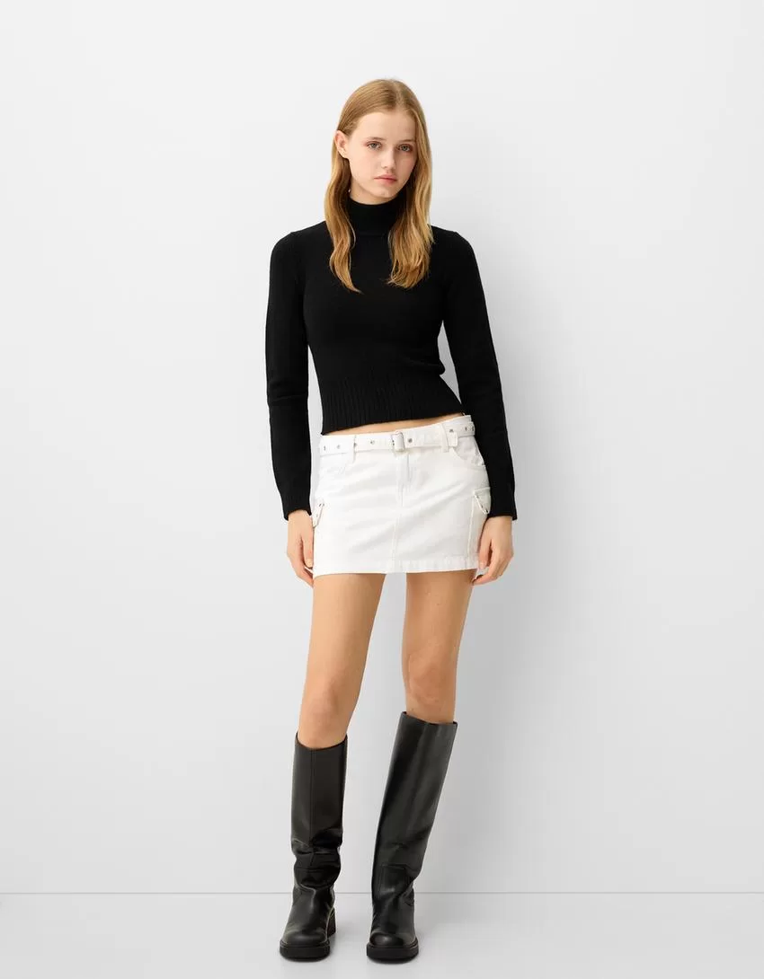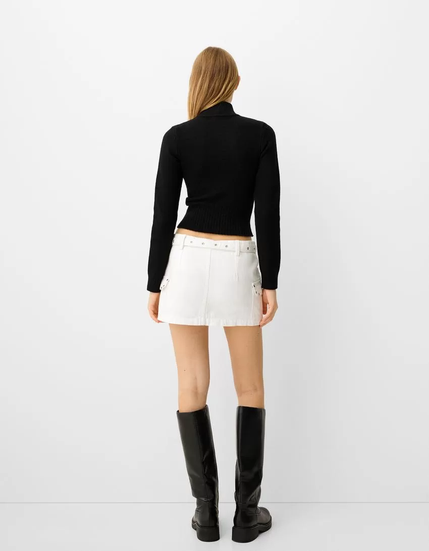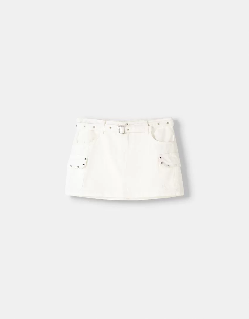 Minigonna cargo borchiata con cintura