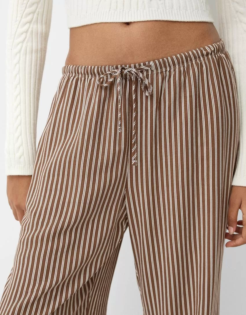 Pantaloni dritti a righe con elastico in vita