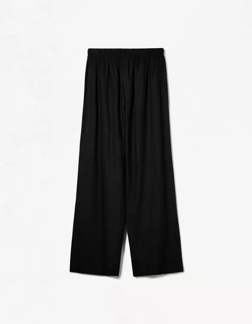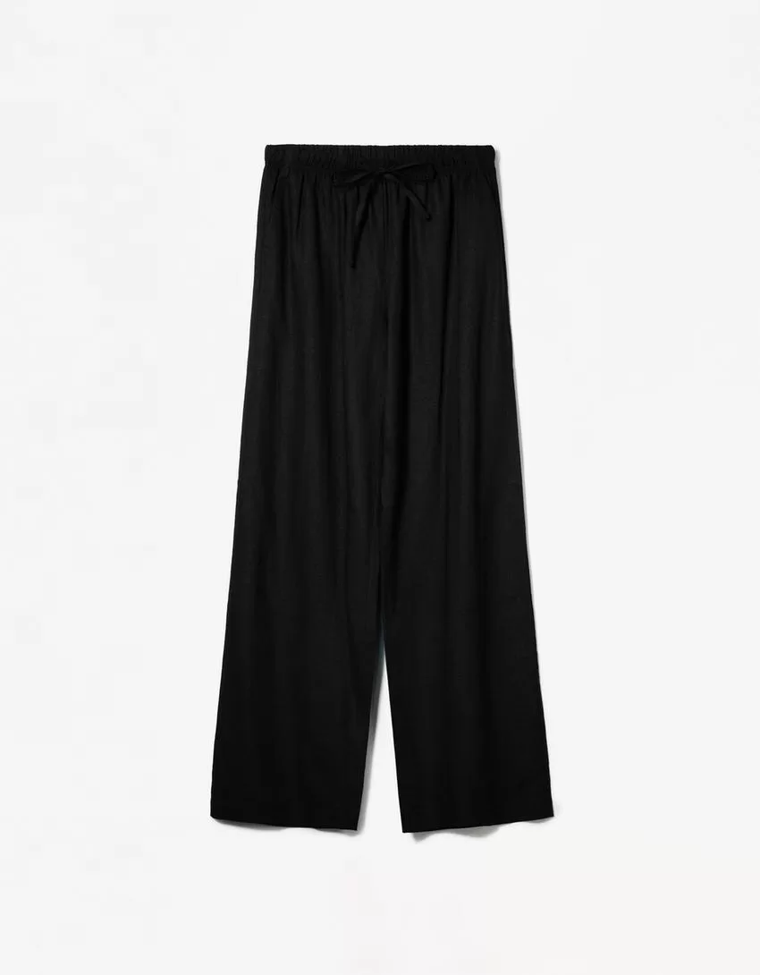 Pantaloni in misto lino con elastico in vita