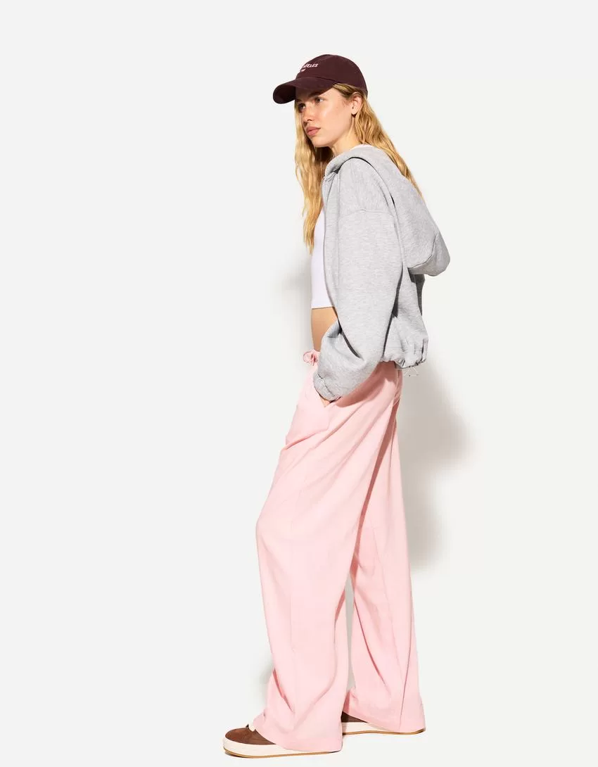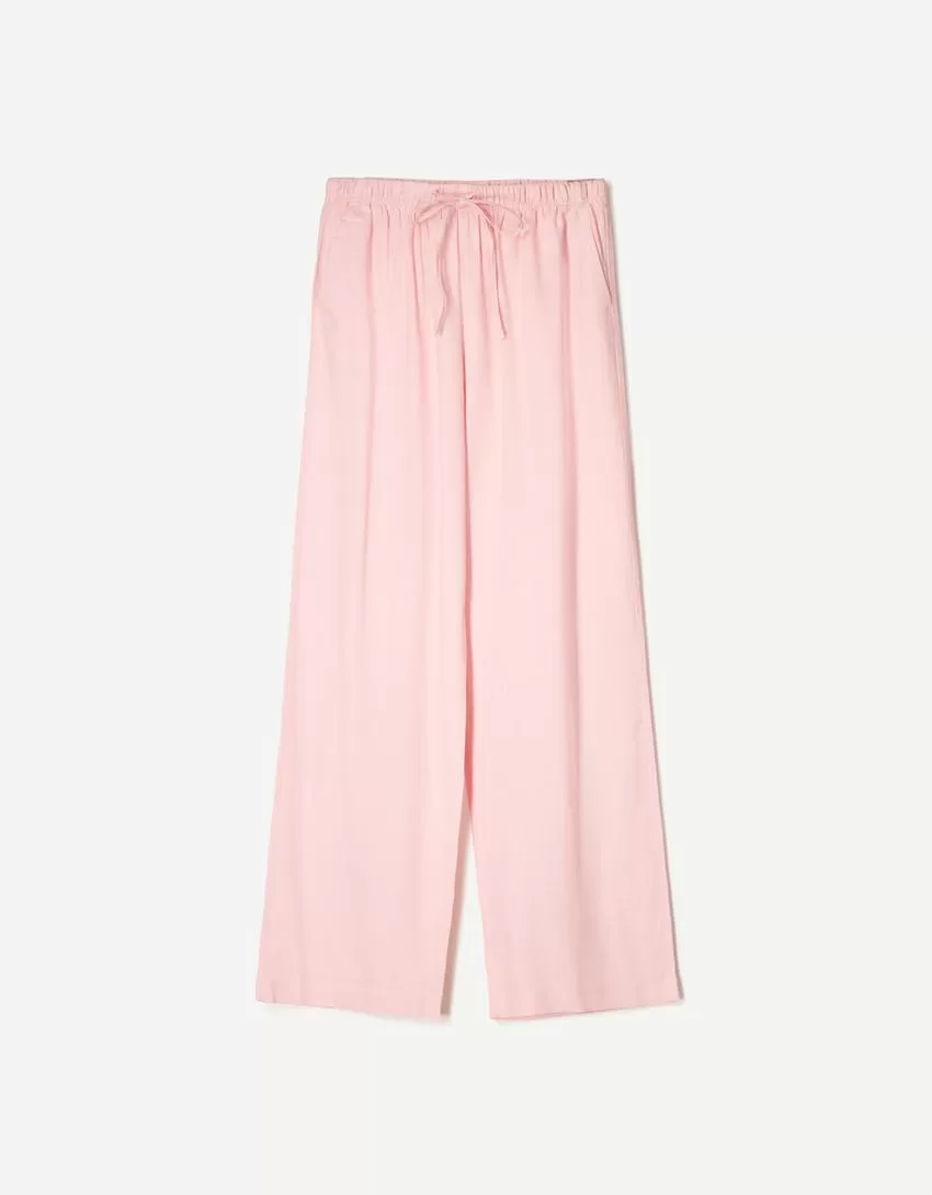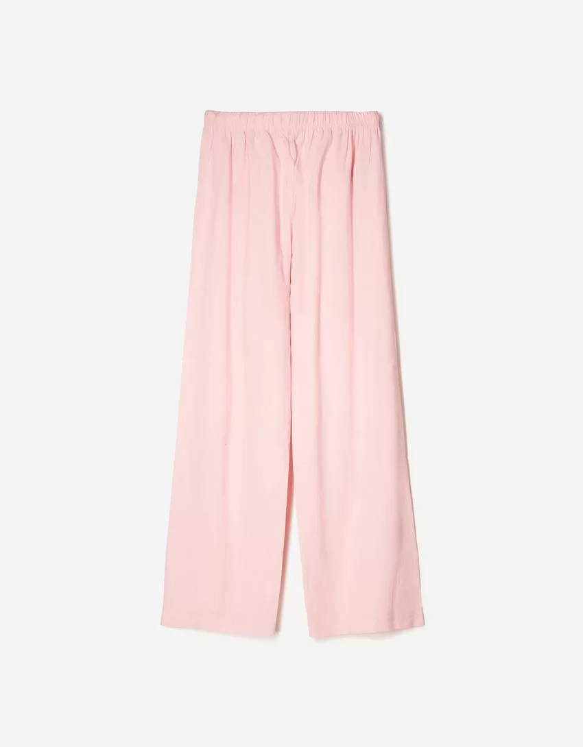 Pantaloni in misto lino con elastico in vita