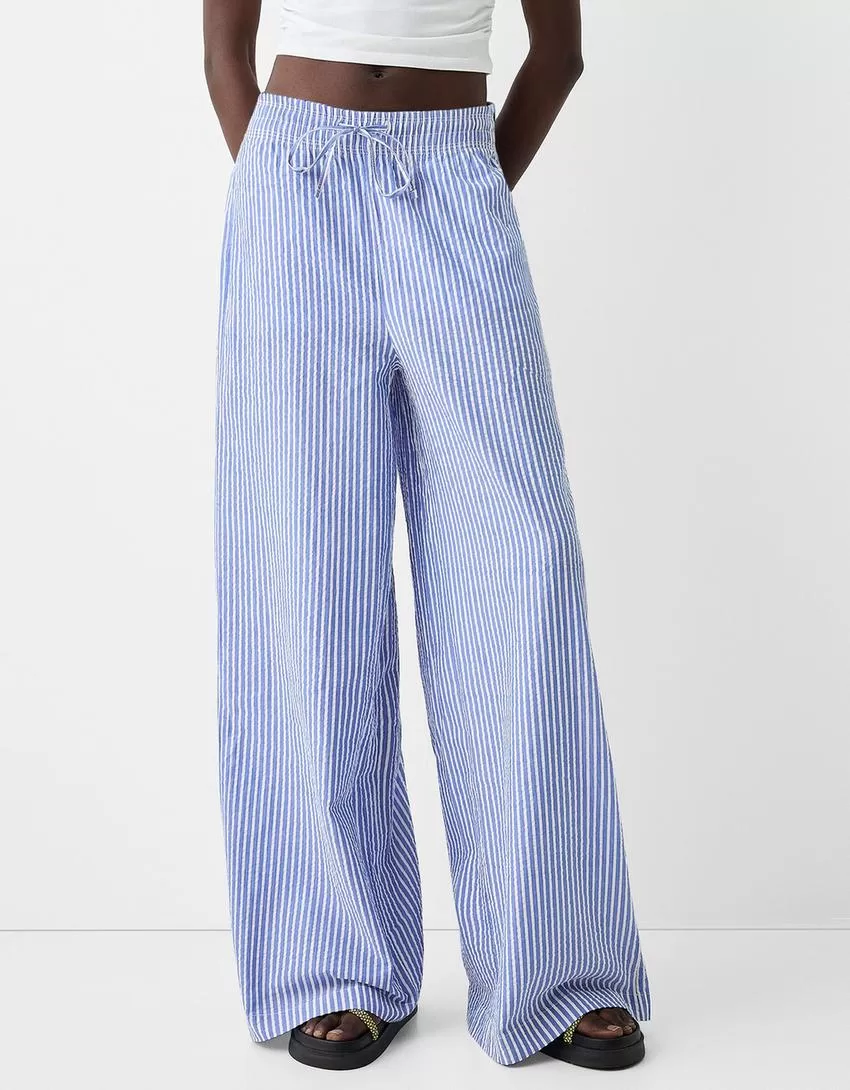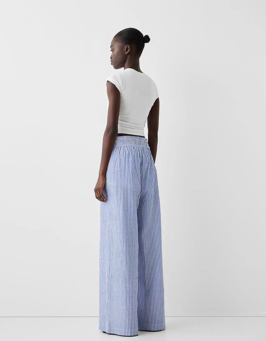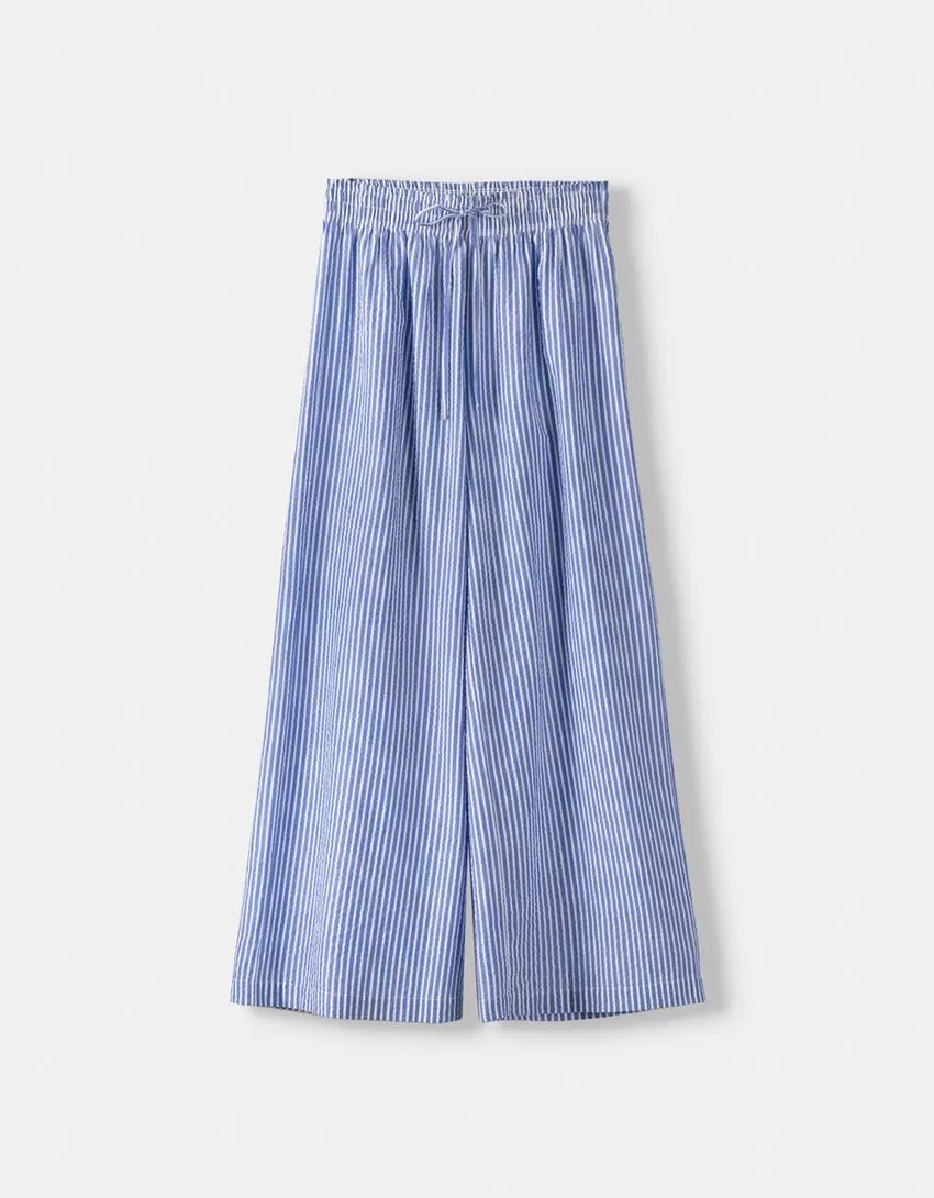 Pantaloni rigati con gamba ampia effetto stropicciato