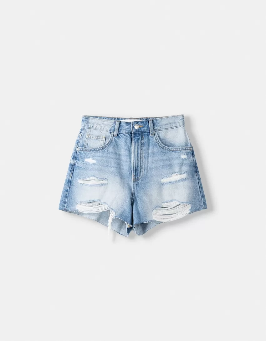 Shorts in denim strappati