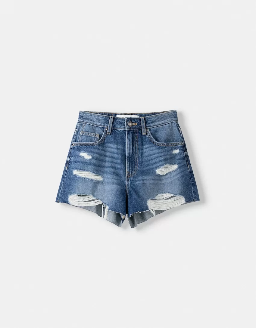 Shorts in denim strappati