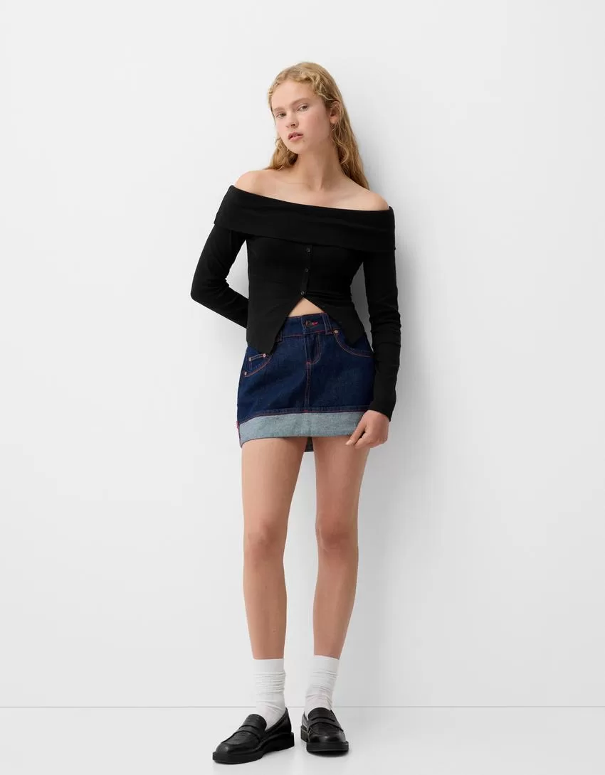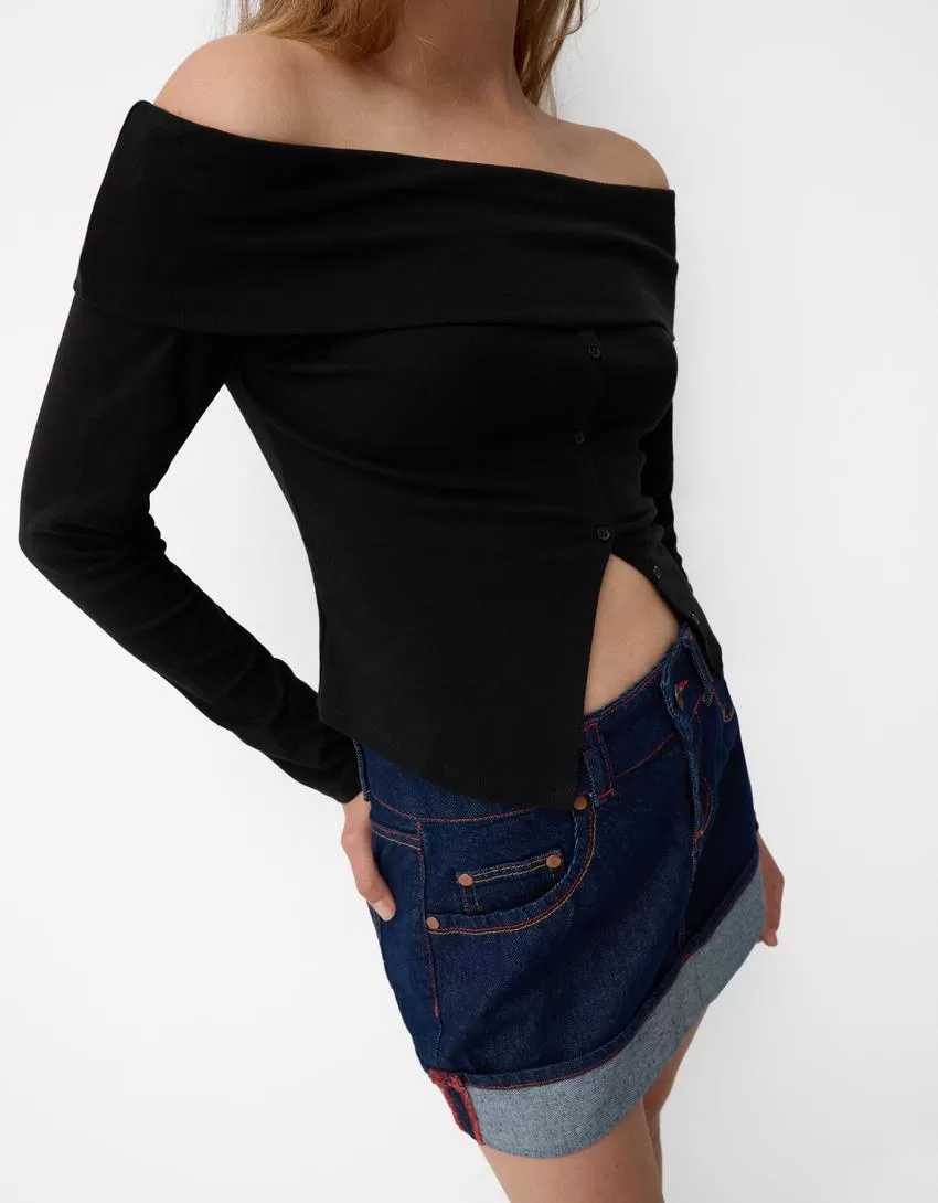T-shirt a manica lunga con bottoni