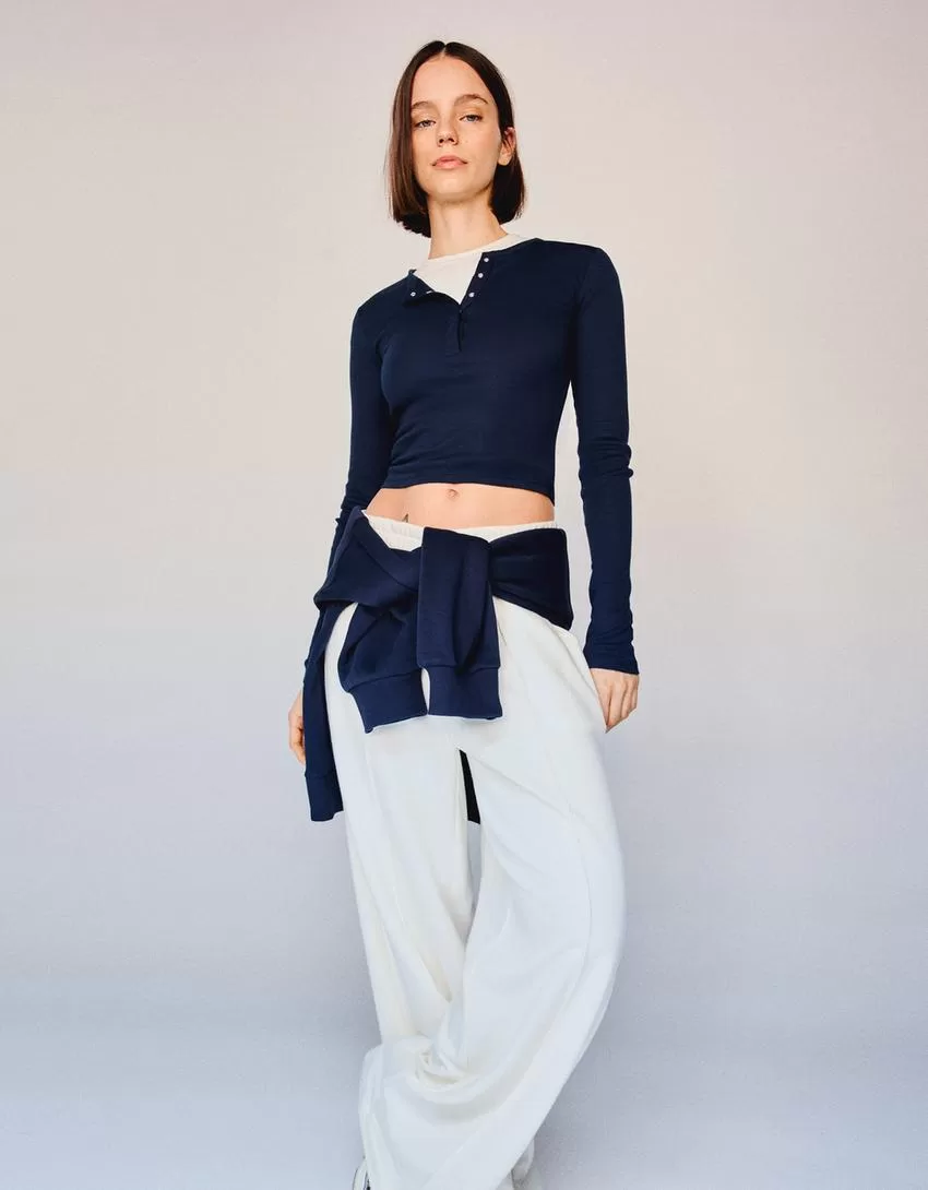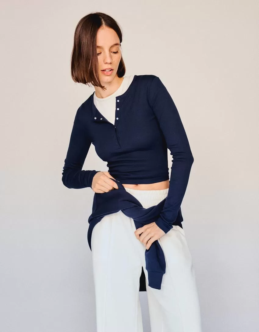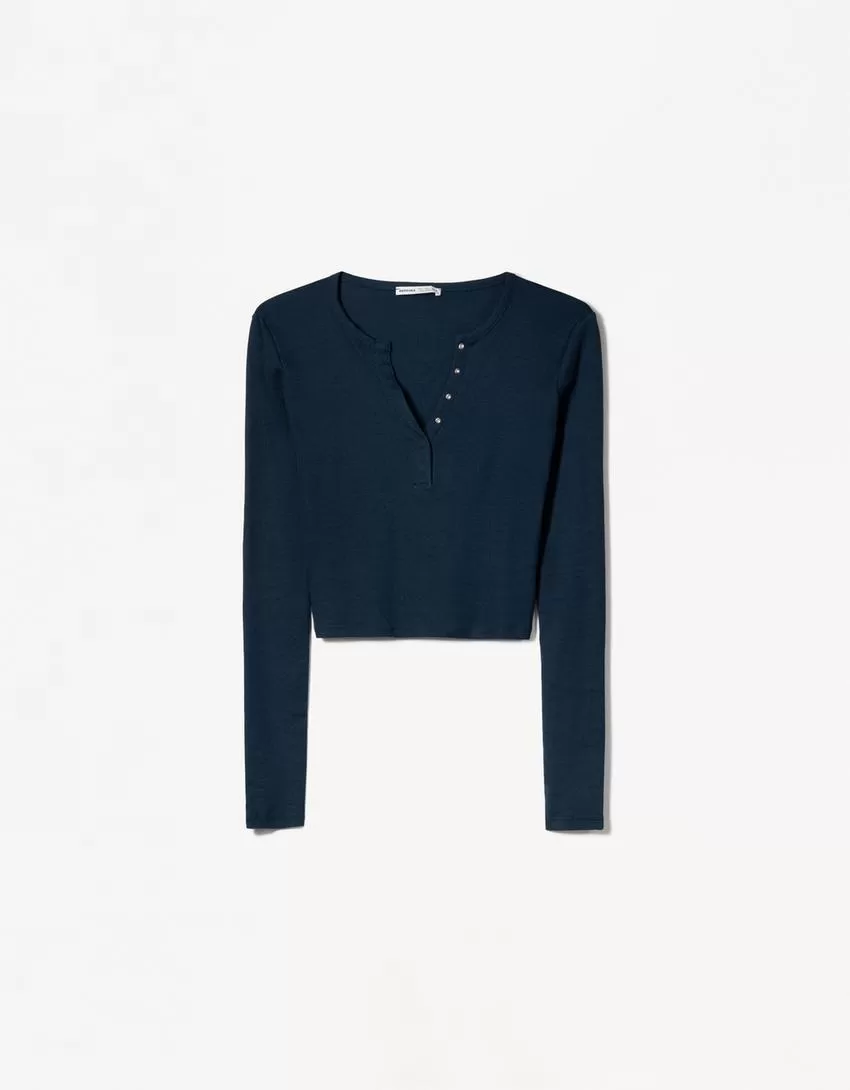 T-shirt serafino a maniche lunghe