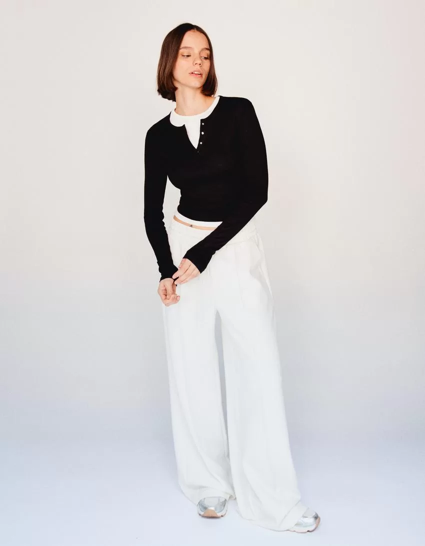 T-shirt serafino a maniche lunghe