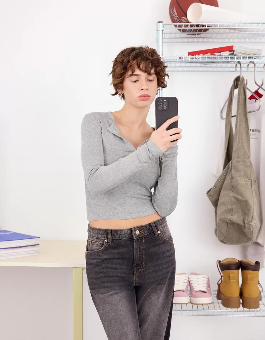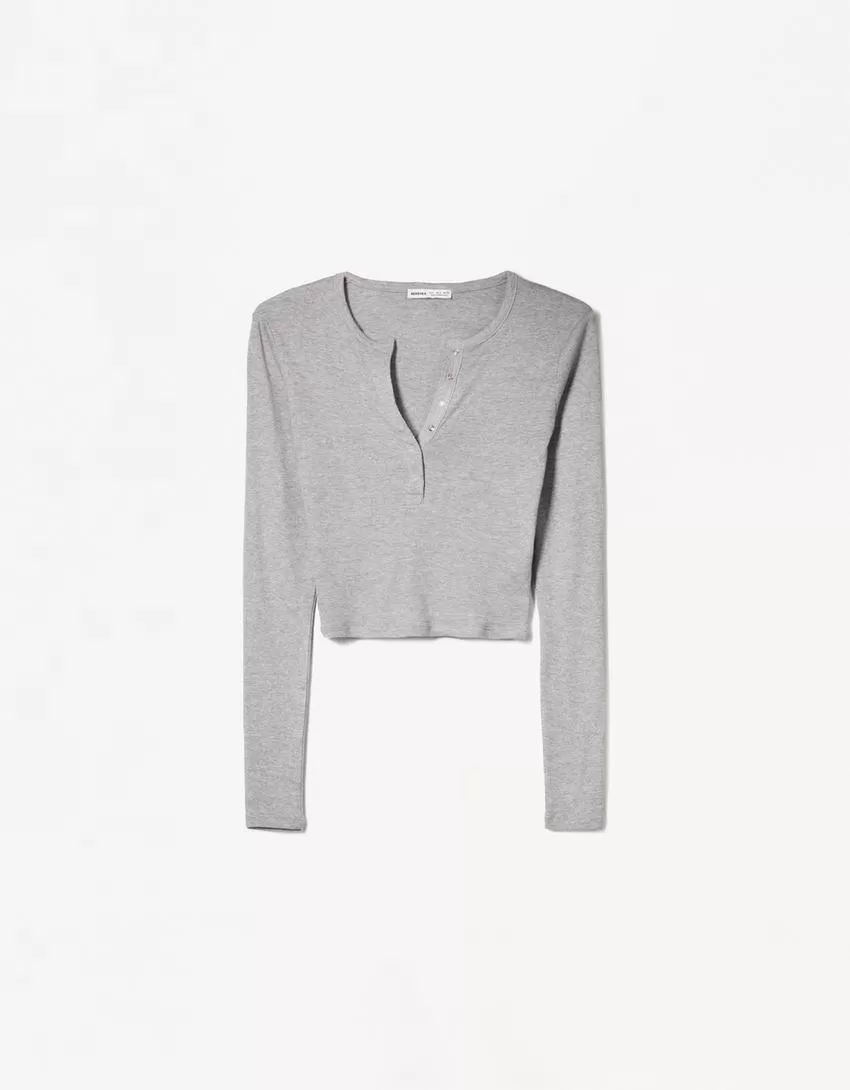 T-shirt serafino a maniche lunghe