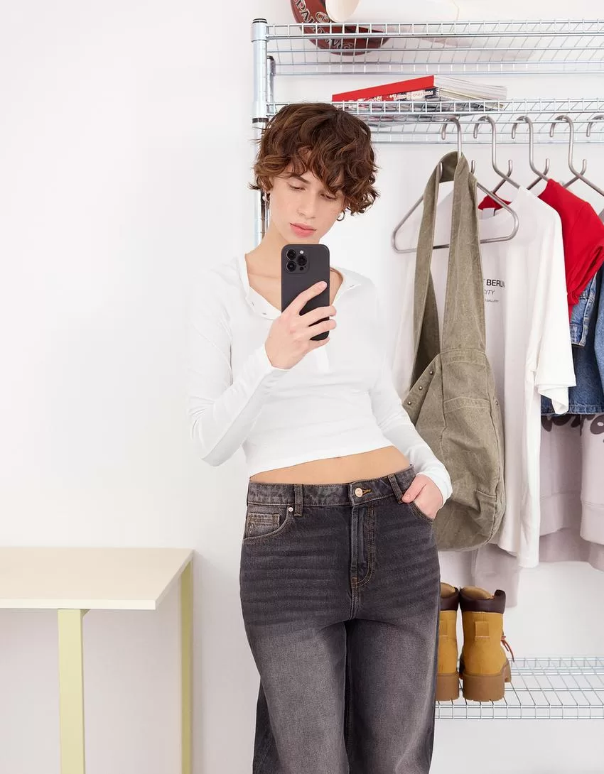 T-shirt serafino a maniche lunghe
