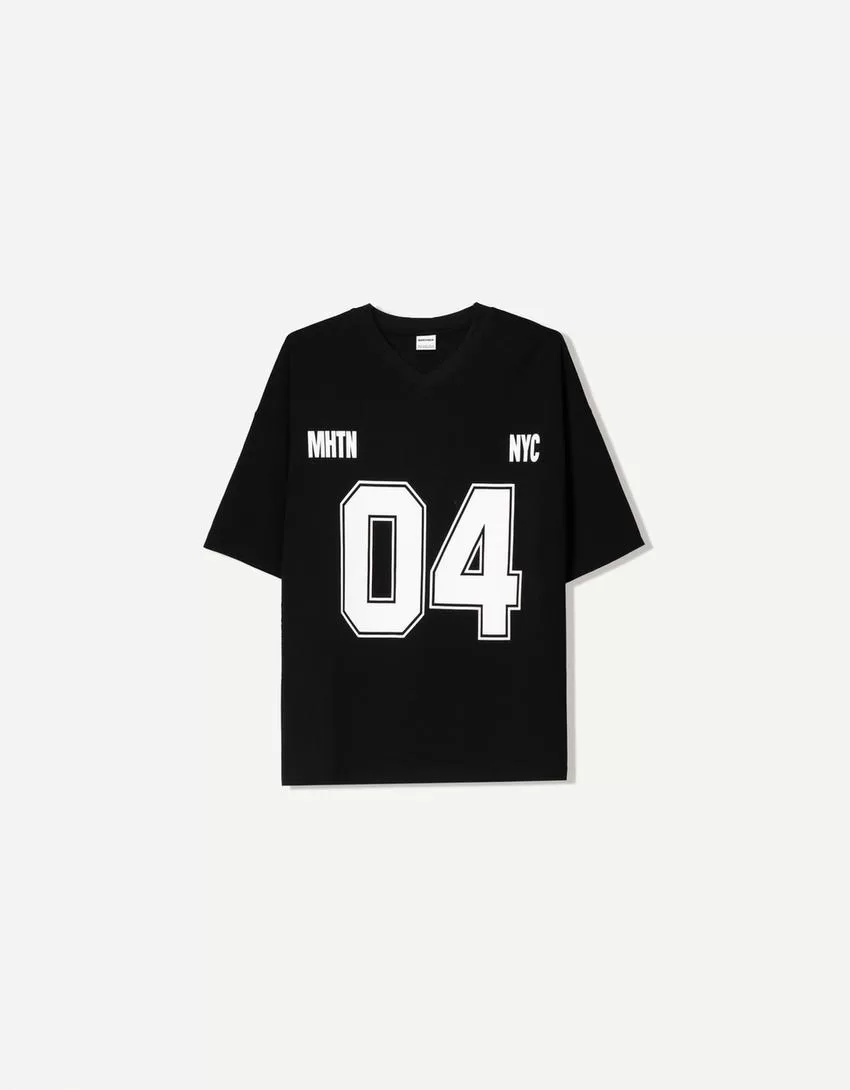 T-shirt stampata a maniche corte con scollo a V