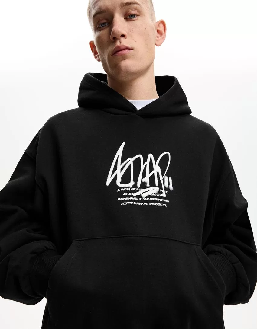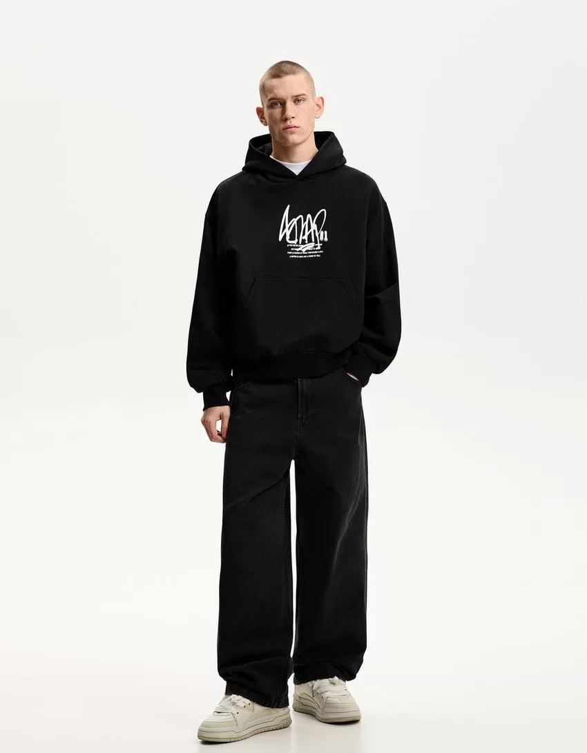 Felpa con cappuccio dalla vestibilità squadrata stampata