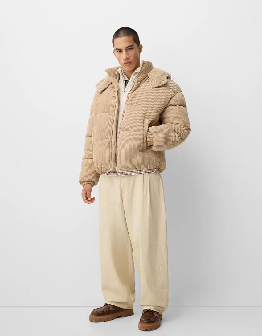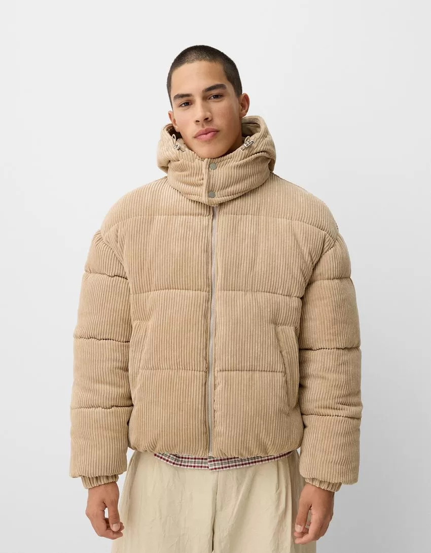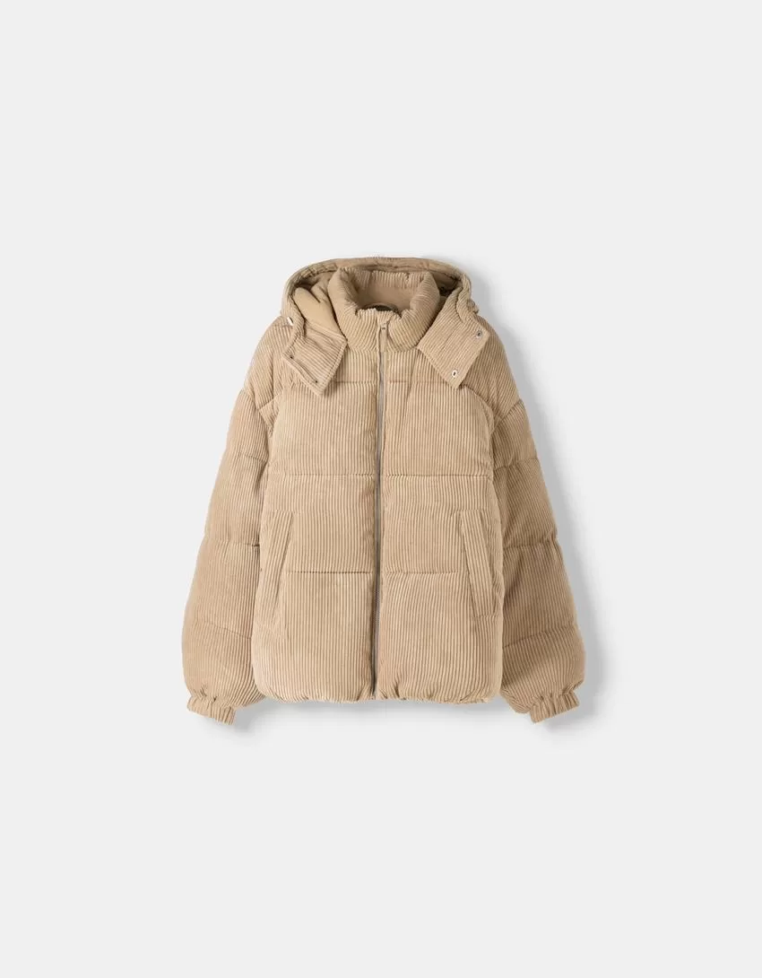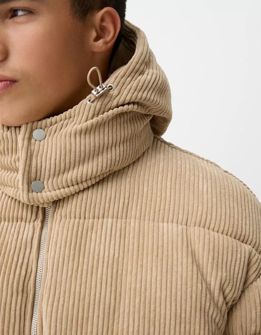 Piumino in velluto a coste con cappuccio
