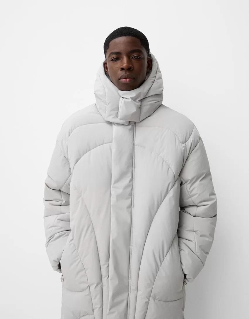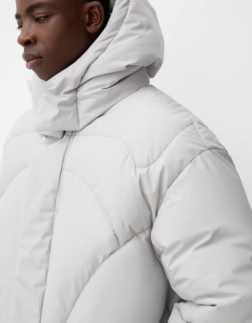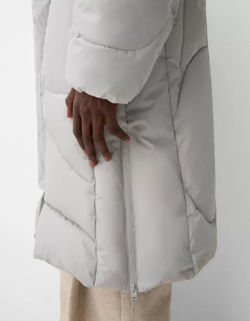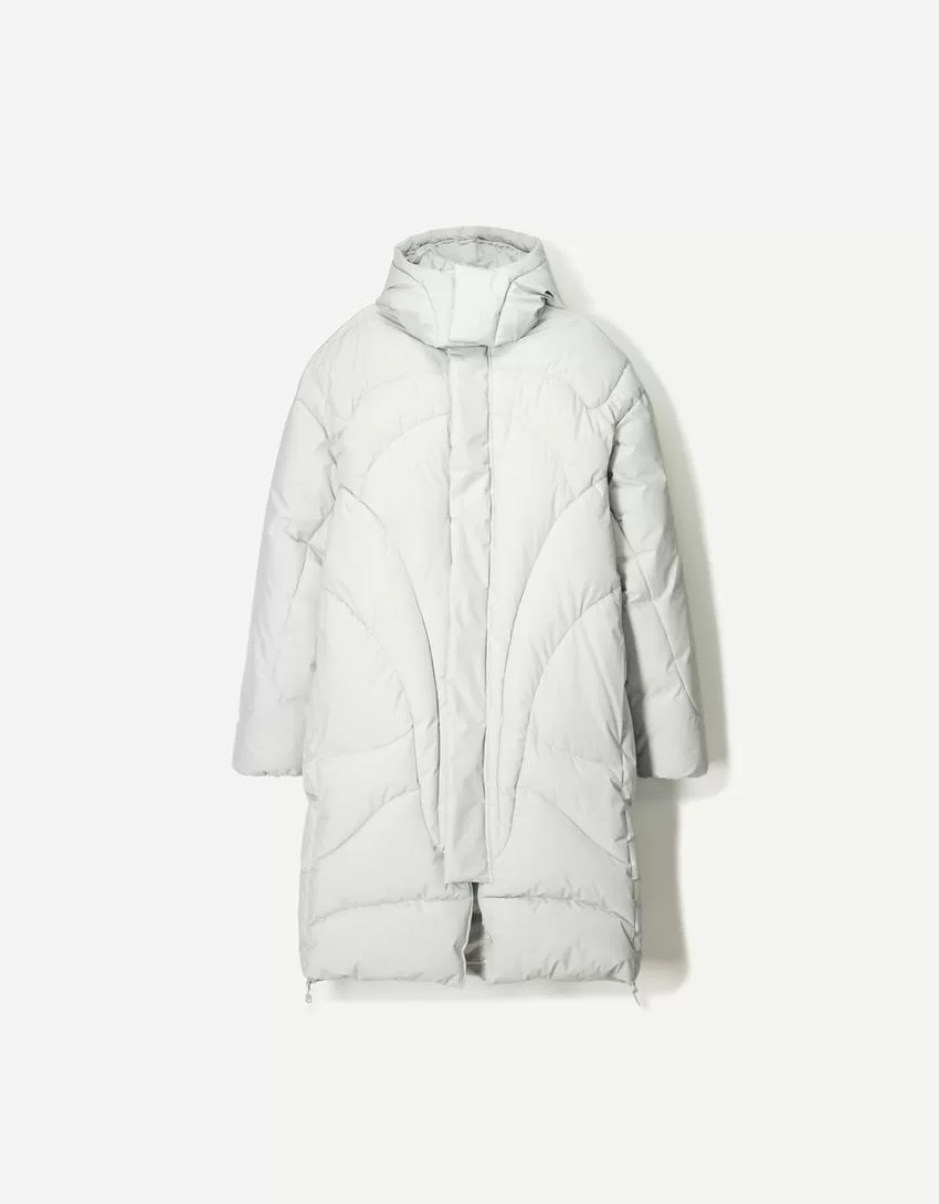 Piumino lungo con cappuccio