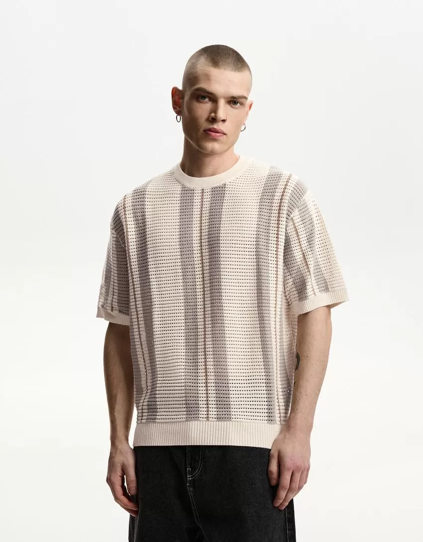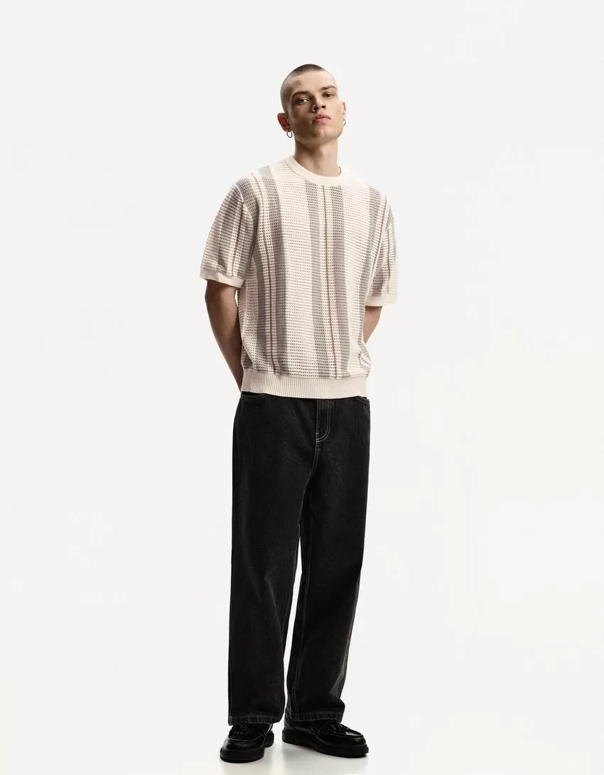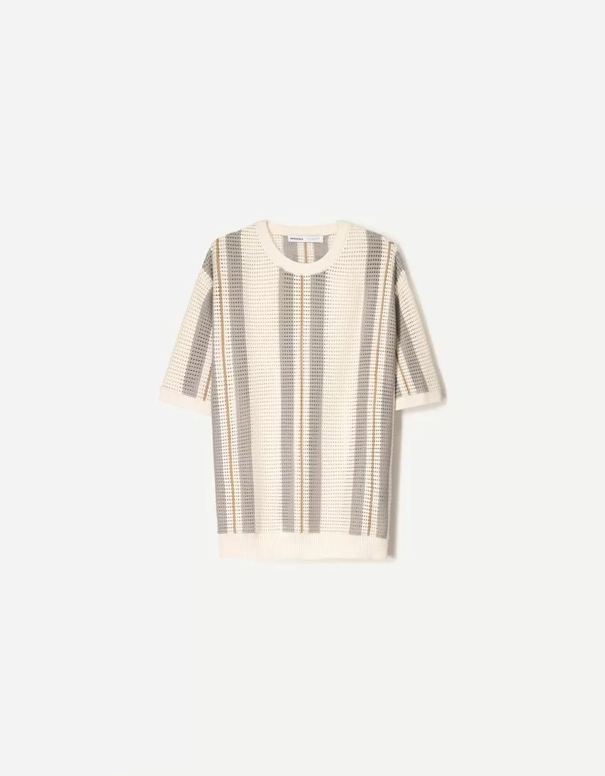 T-shirt a maniche corte a righe testurizzate